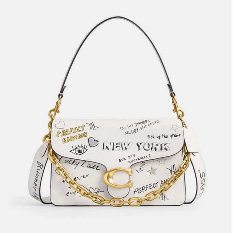 กระเป๋ารุ่น Chain Tabby Shoulder Bag With Sketch Print ดีไซน์ลวดลายเส้นขีดเขียนเล่นๆ เหมือนงานสเก็ตช์ในสมุด เพิ่มลูกเล่นสนุก ๆ และเอกลักษณ์เฉพาะ สามารถปรับเปลี่ยนสไตล์ได้หลากหลาย ทั้งสะพายมือ สะพายไหล่